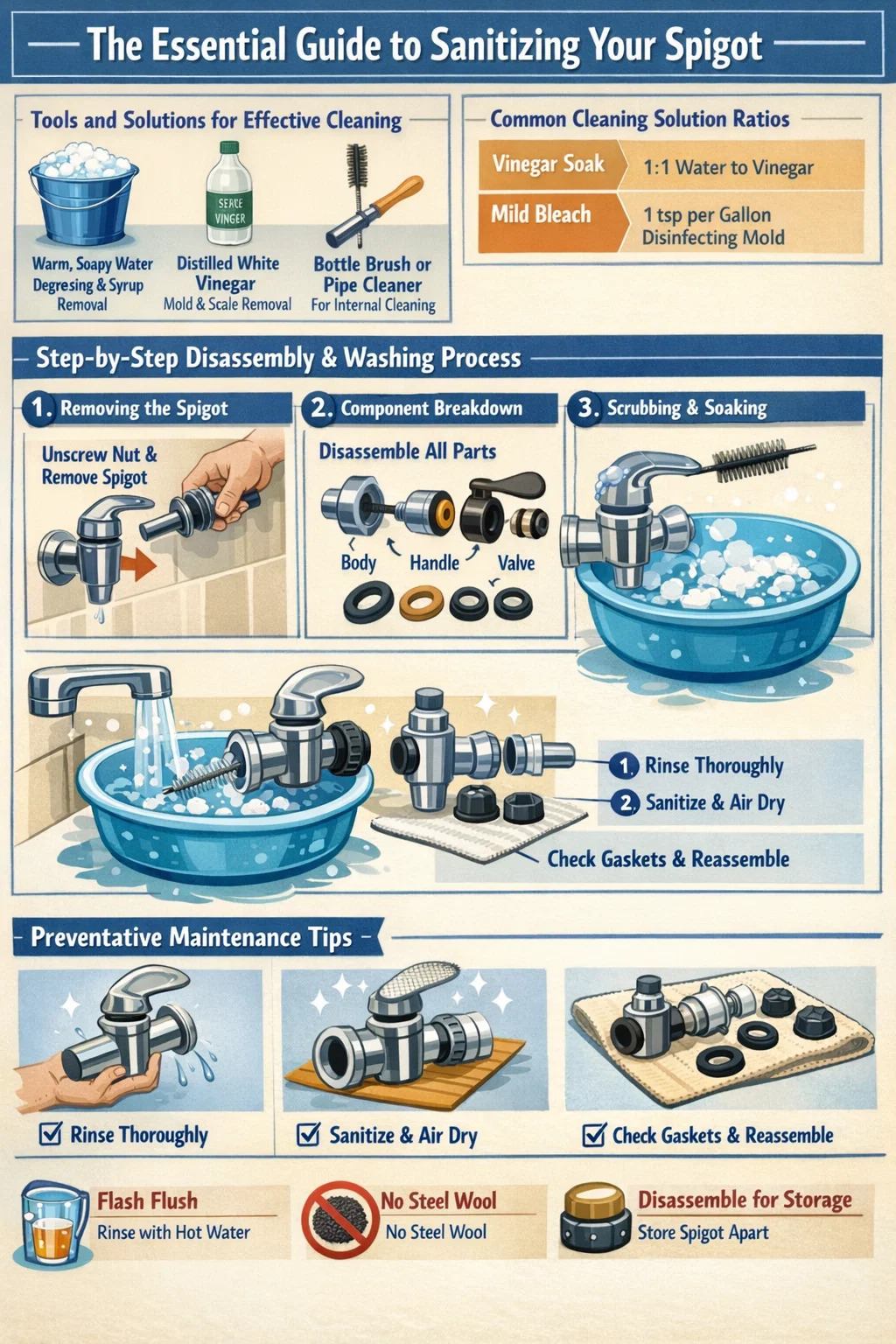 Upang mapanatili ang kaligtasan sa pagkain at maiwasan ang paglaki ng mga nakakapinsalang bakterya, a spigot ng dispenser ng inumin dapat malinis nang malalim pagkatapos ng bawat paggamit o hindi bababa sa isang beses sa isang linggo kung ginagamit para sa simpleng tubig. Dahil ang mga spigot ay may masalimuot na panloob na mga channel, ang pagbanlaw sa labas ay hindi sapat; kailangan ang buong disassembly upang alisin ang malagkit na mga residu ng asukal at mga spore ng amag na umuunlad sa madilim at mamasa-masa na kapaligiran.