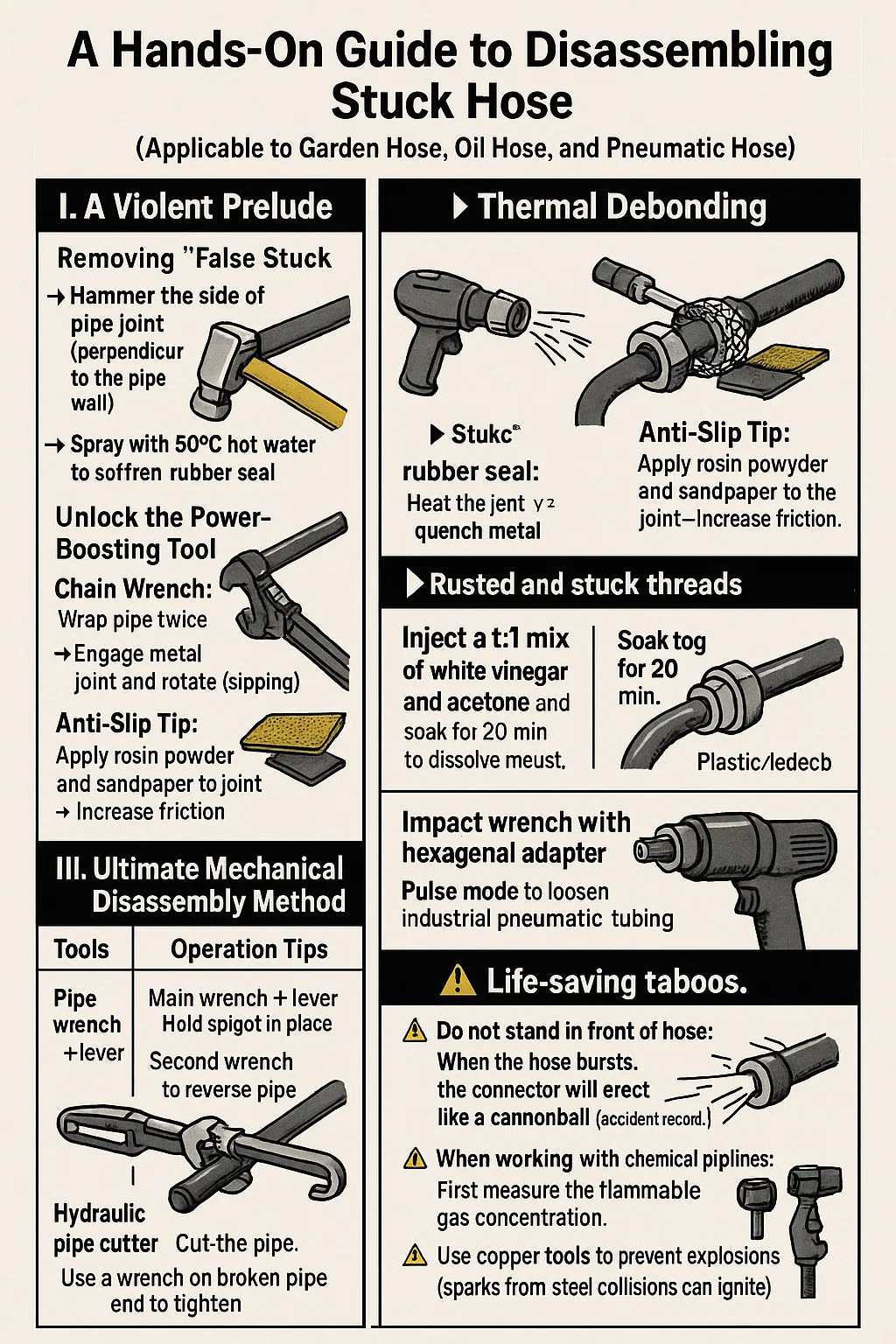 *Huwag tumayo sa harap ng medyas: Kapag sumabog ang hose, ang konektor ay mag -eject tulad ng isang kanyon (record record: tumagos ng 3cm ng kahoy).