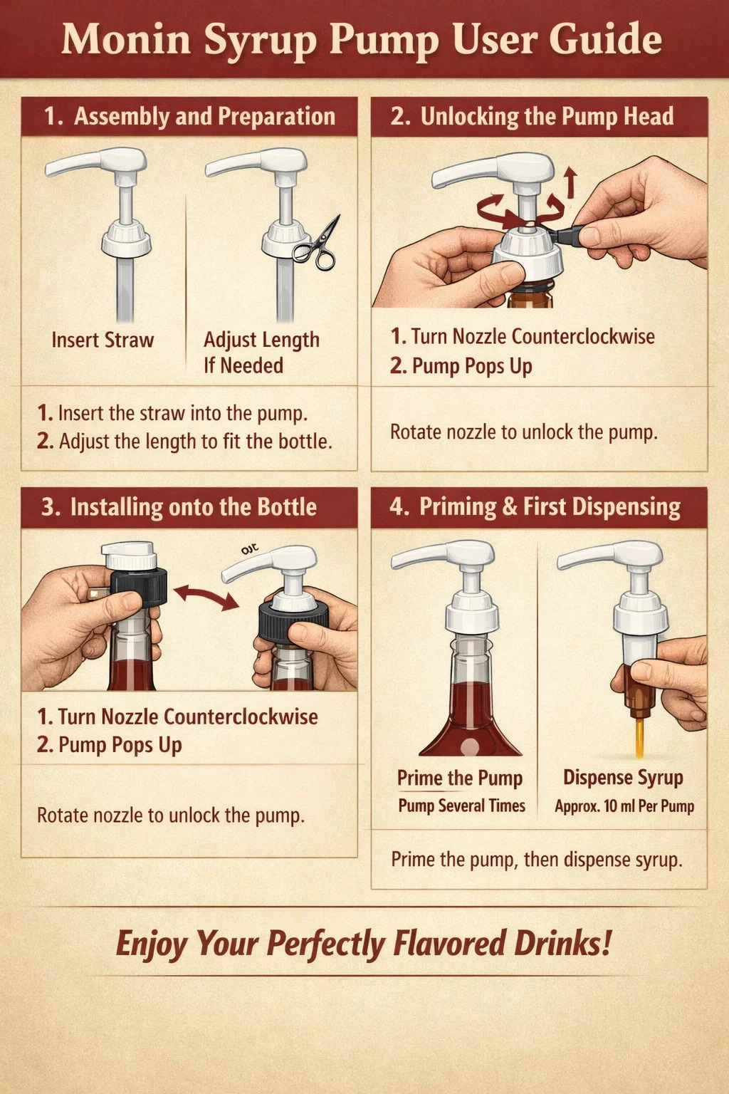 Para sa Monin syrup pump, isang klasikong bar tool, ang paggamit nito nang tama ay gagawing mas maayos ang paghahanda ng iyong inumin at mas mapapanatili ang kalidad ng syrup.